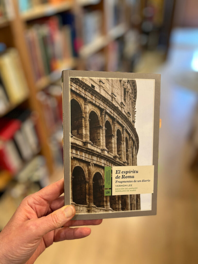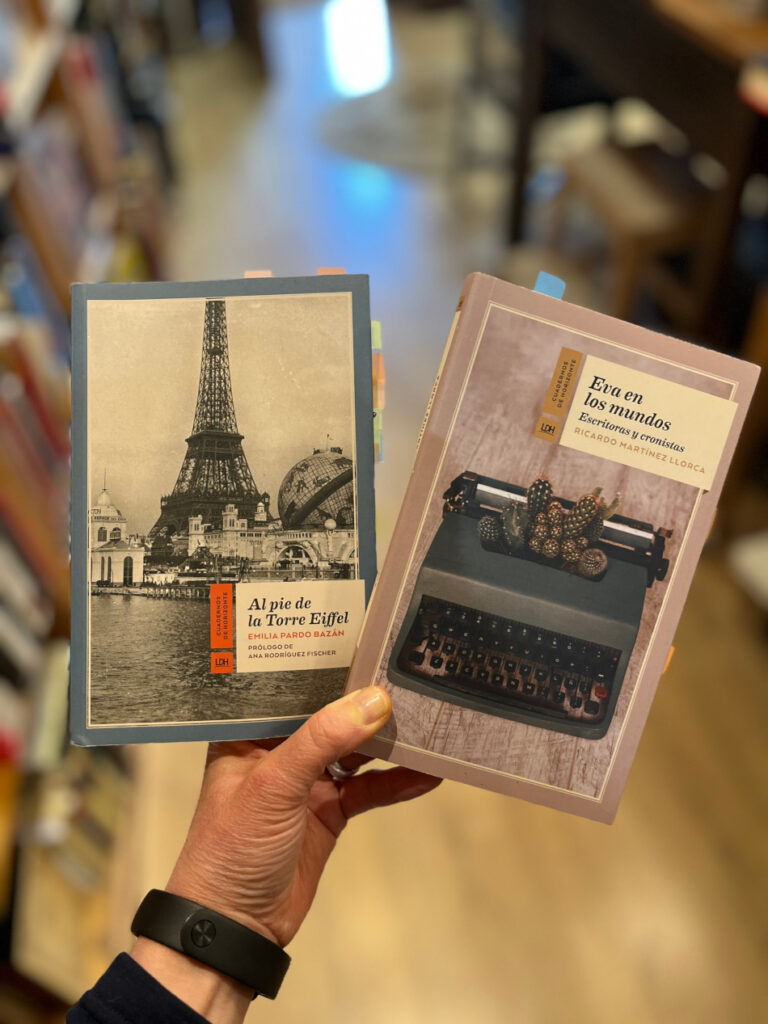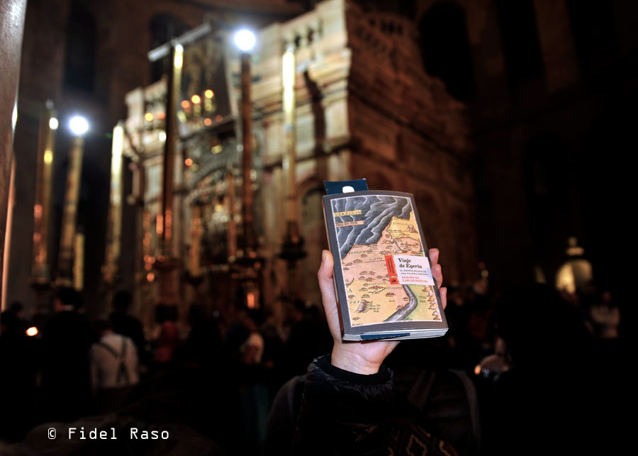 Entre mis fetiches están La naturaleza del silencio, y En el barco de Ise, de Suso Mourelo, un gran periodista de viajes y mejor persona, al que conocí gracias al ofrecimiento de Pilar de organizar algo juntas. Lo mismo pasó con Mario Colleoni, quedé deslumbrada por Contra Florencia que nunca falta en Primera página desde su publicación, también en 2019, y al que conocí después con la presentación de otro libro. De Virginia Mendoza…, ¿qué os puedo decir?, el primero de sus libros que leí fue Heridas del viento, imprescindibles crónicas de Armenia, y ya no pude sino admirarla, y… traerla a la librería. Con Viaje de Egeria tengo otra relación de amor libresco, pues descubrí a esta extraordinaria viajera antigua gracias a la magnífica edición de su libro por La Línea del horizonte. Tampoco dejo de recomendarlo y este, me lo llevé de viaje a Jerusalén. Ahí lo veis en la última foto, en mi mano, en el Santo Sepulcro, de vuelta a Tierra Santa diecisiete siglos después. Las crónicas de Emilia Pardo Bazán reunidas en Al pie de la torre Eiffel, Las tres Venecias, de Jorge Canals Piñas y El espíritu de Roma, de Vernon Lee, son otros de esos libros que me dejaron huella y forman parte del corazón de la librería.