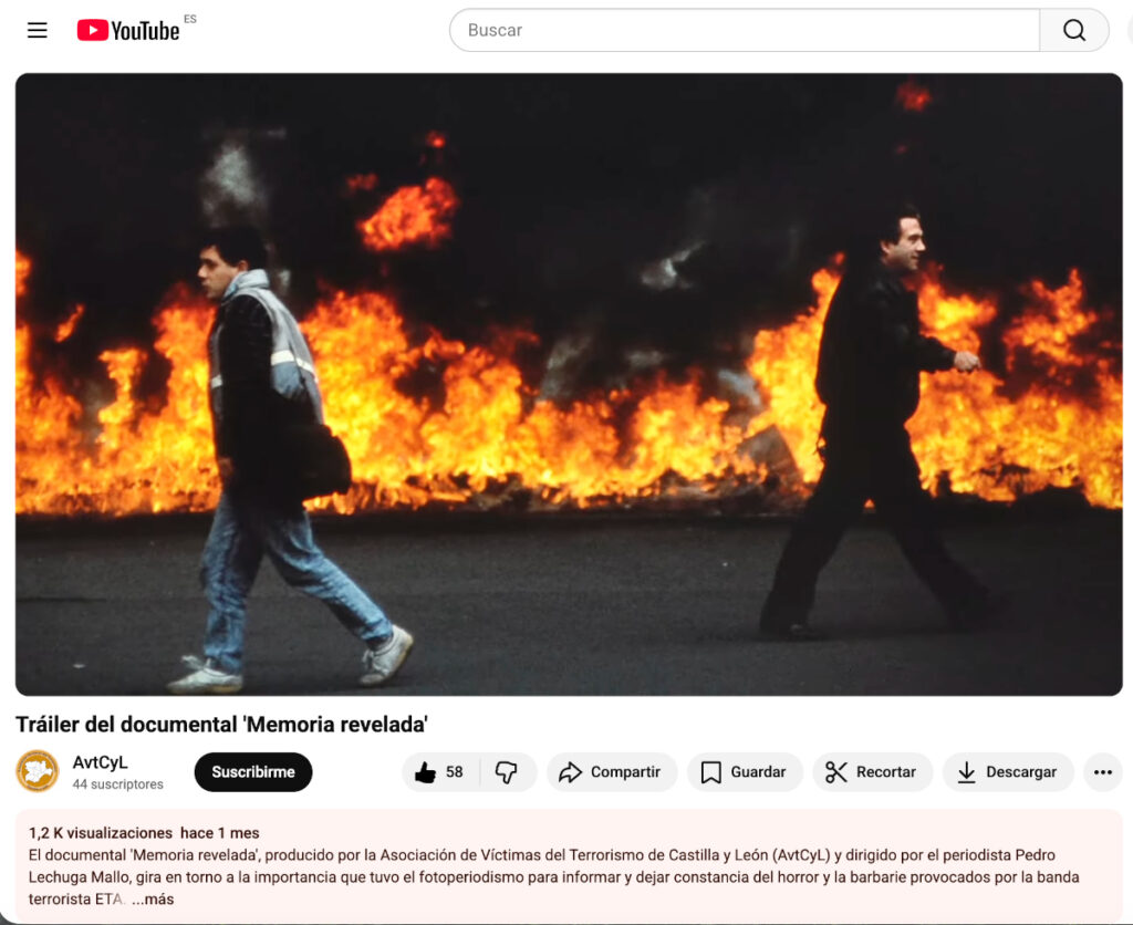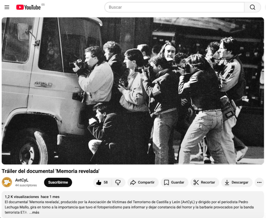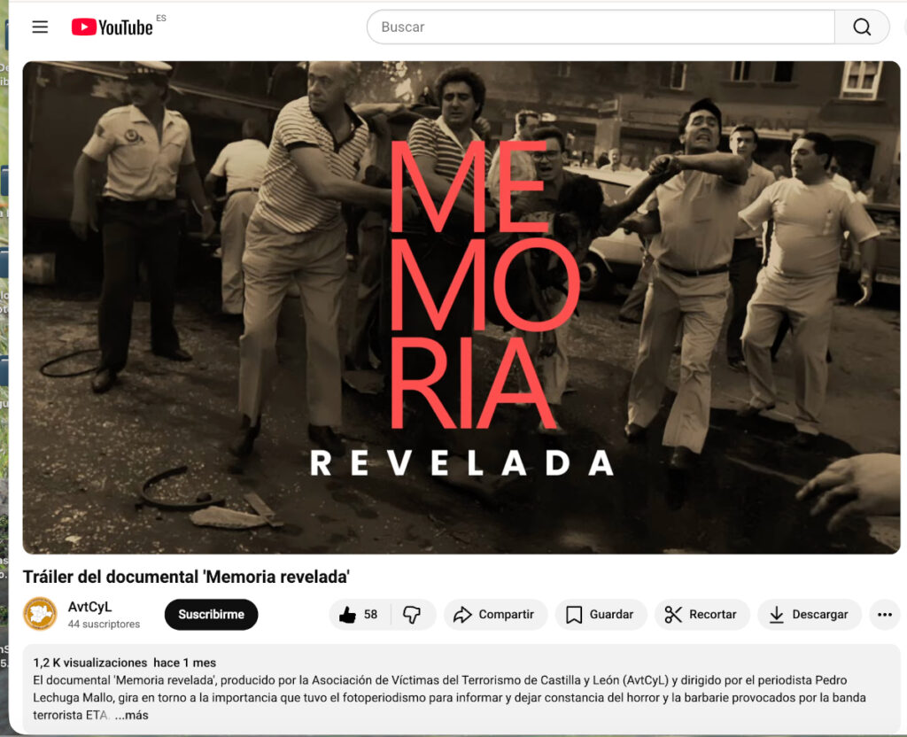 EMOCIÓN fue la palabra más repetida ayer por el público en el estreno del documental ‘Memoria revelada’, en el que la mirada del fotoperiodista Fidel Raso representa las de todos los reporteros gráficos que vivieron y retrataron los Años de Plomo de ETA, una atroz sucesión de asesinatos, secuestros, extorsiones, amenazas, décadas de violencia, impotencia y miedo. Las emociones no solo se nombran si no que se expresan en este trabajo, dirigido por el periodista Pedro Lechuga Mallo y promovido por la Asociación de Víctimas del Terrorismo de Castilla y León. El auditorio, compuesto principalmente por estudiantes de los últimos cursos de periodismo, que también forman parte del filme, fue el ideal para el comienzo de una andadura que, esperamos, lo lleve a muchos escenarios del país. Es necesario y obligado mantener viva la memoria, reconocer a las víctimas y también el trabajo de quienes, a través de los visores de sus cámaras, fueron testigos de primera línea y se expusieron, física y psicológicamente, para, según resume Fidel, cumplir su misión. Gracias es otra de las palabras que más veces se escuchan en el documental y se pronunciaron asimismo en el salón de actos de la Facultad de Filosofía y Letras de la UVA.