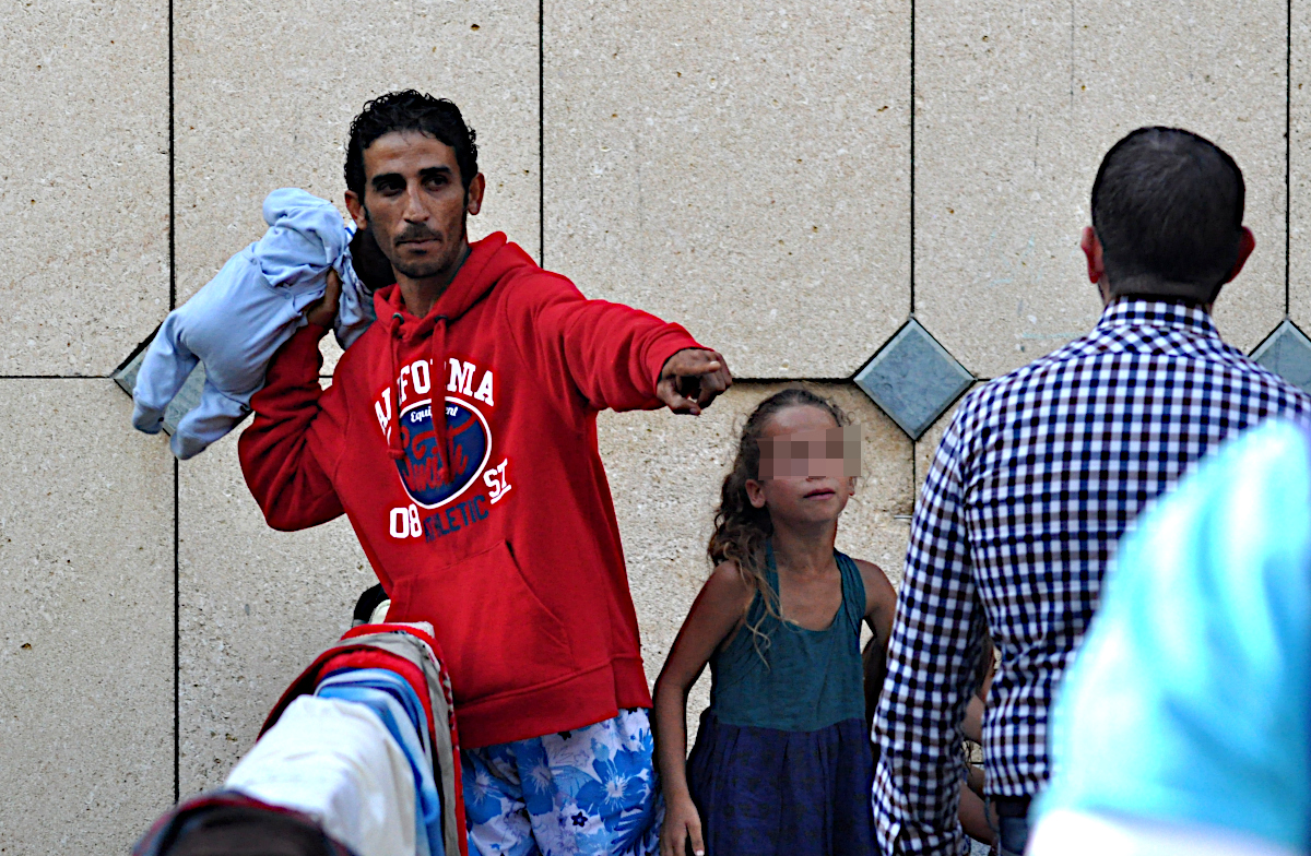 «Somos de Siria 8 hombres, 4 mujeres, 8 niños, 1 Bebe. Pedimos mesericordia. Necesitamos permiso especial para ir a la peninsola con nuestros niños nuestro país está en guerra. No podemois quedarnos aquí. Gracias.»